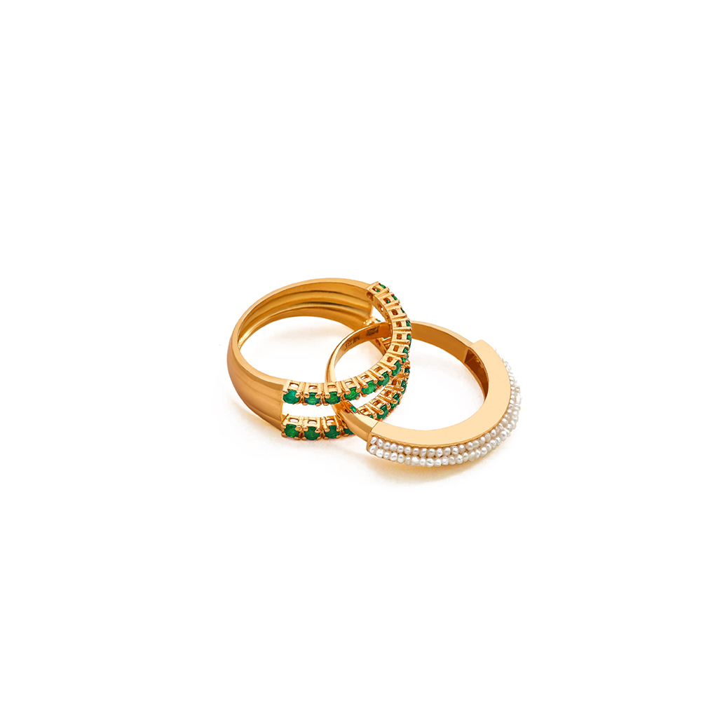 ذهب أصفر عيار 22 (8.5 جرام)، زمرد (0.188 جرام)، ولؤلؤ بحريني طبيعي (0.258 جرام) تقريبًا.