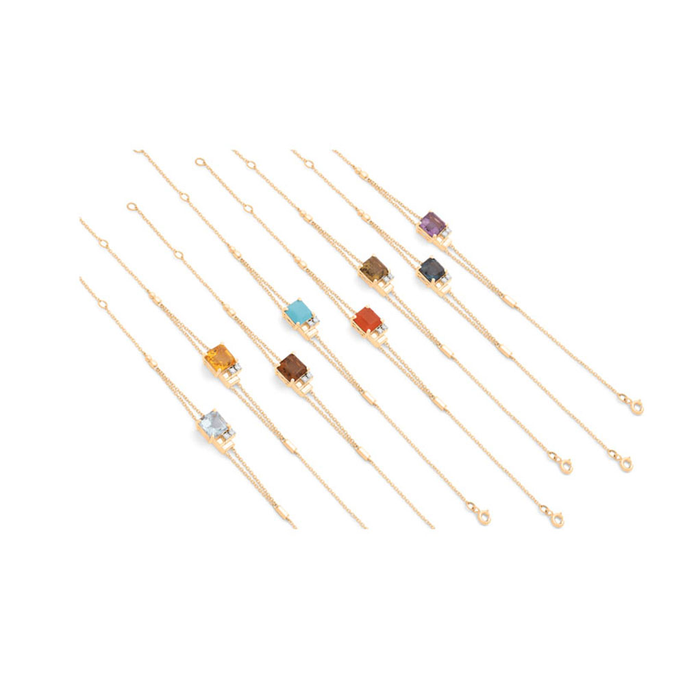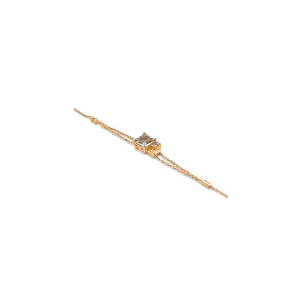 ذهب أصفر عيار 18 (3.127 جرام)، مرصع بالألماس درجة ڤي اس، اللون جي (0.06 قيراط)، وجمشت أخضر (0.54 جرام) تقريبًا.