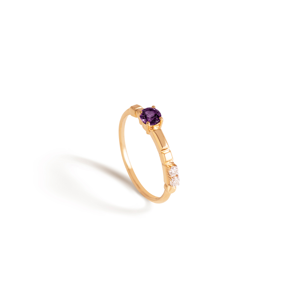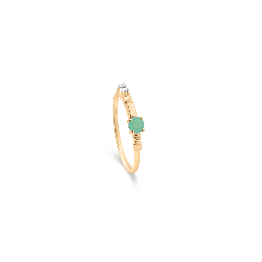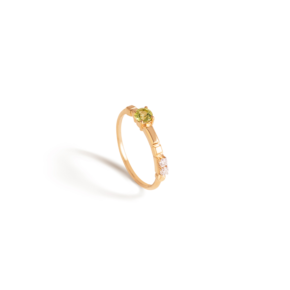 ذهب أصفر عيار 18 (1.882 جرام)، مرصع بالألماس درجة ڤي اس، اللون جي (0.06 قيراط)، وفيروز (0.085 جرام) تقريبًا.