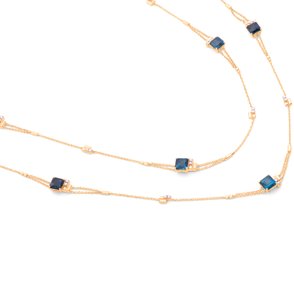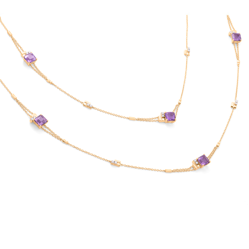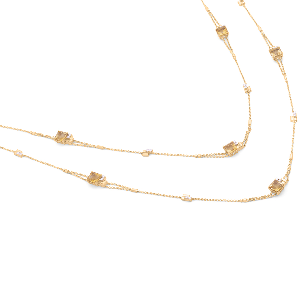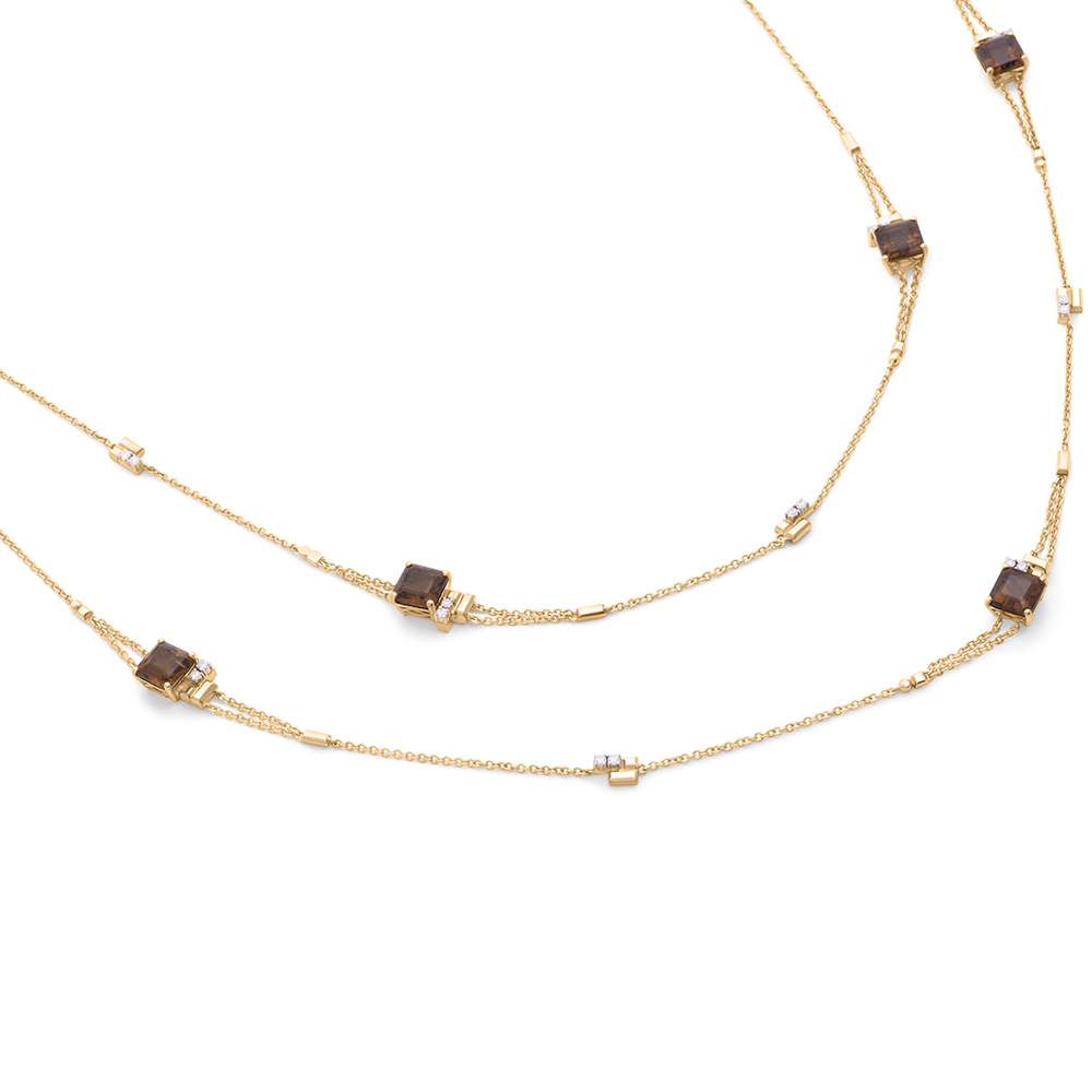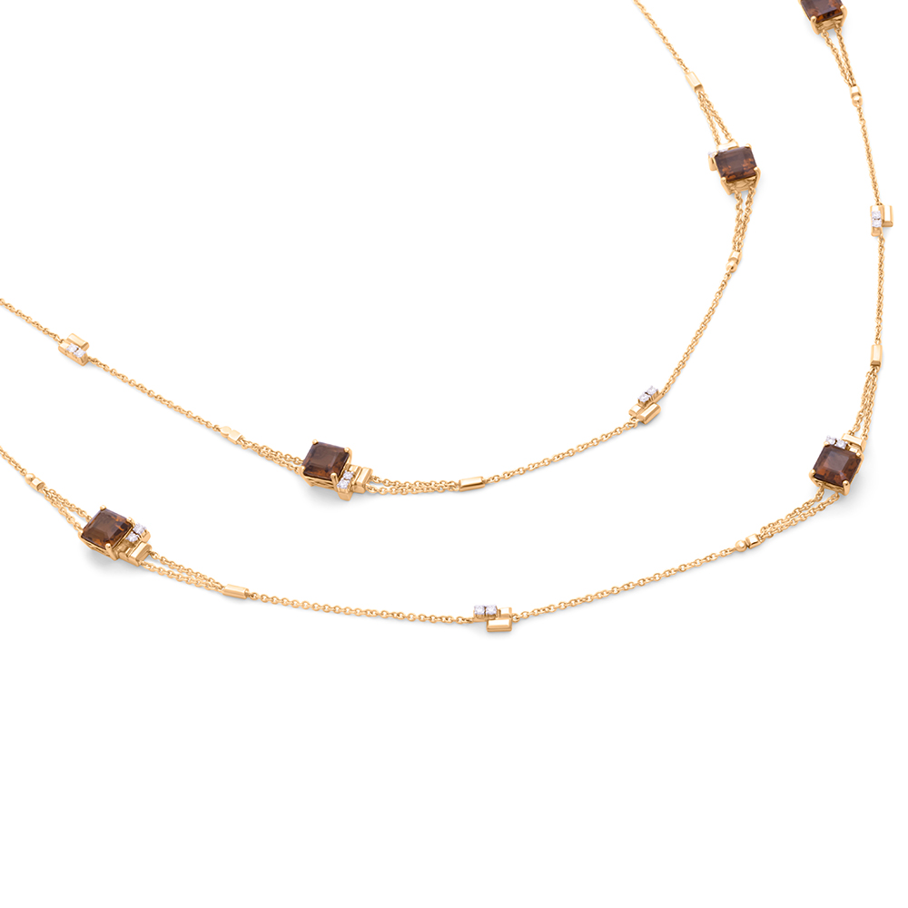 ذهب أصفر عيار 18 (32.671 جرام)، مرصع بالألماس درجة ڤي اس، اللون جي (1.02 قيراط)، وكوارتز (4.4 جرام) تقريبًا.